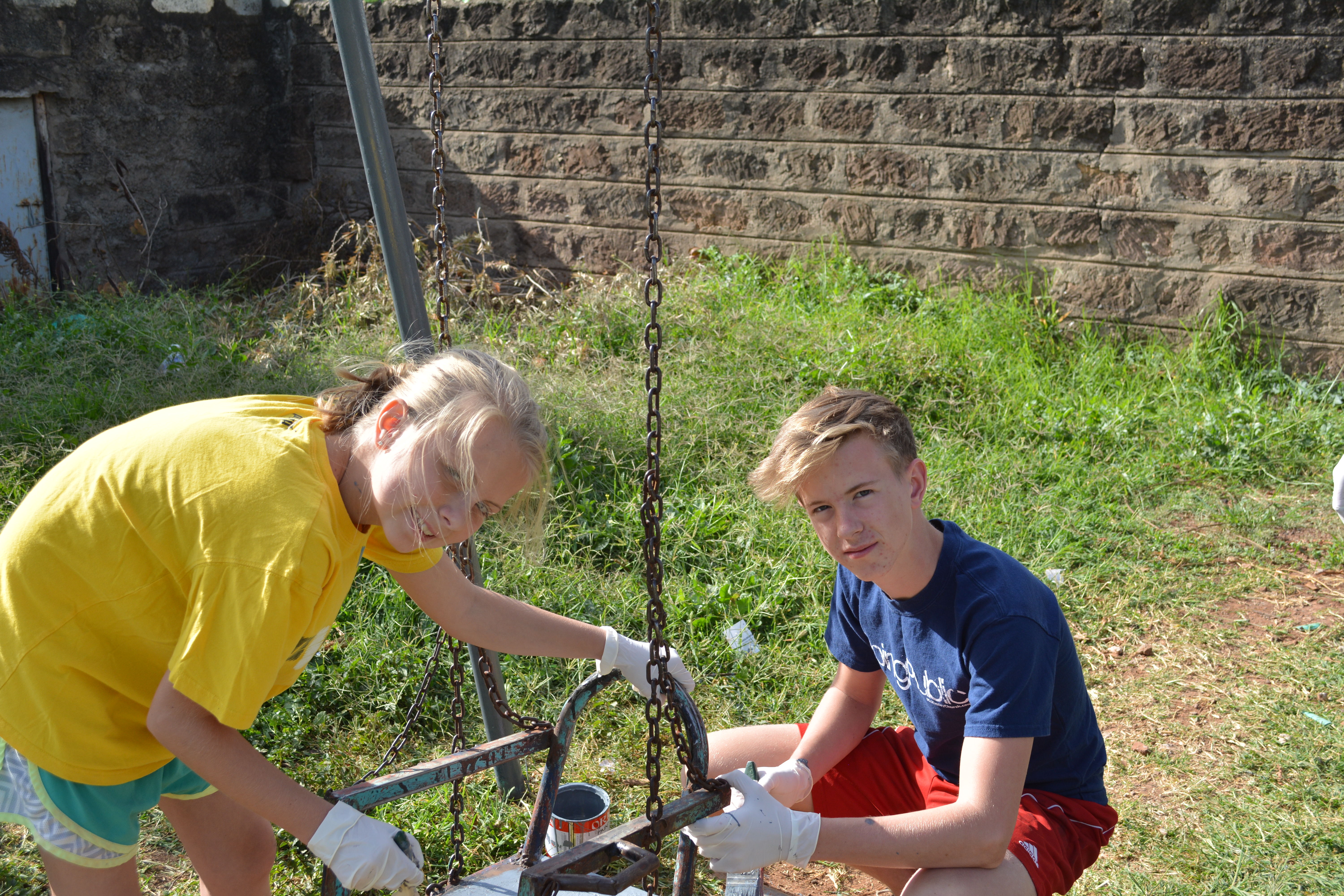On the Eleventh Day of Christmas we repaired, sanded and painted the neighborhood swing set that was in complete disrepair. It was fun to work on it as a family and make it look new again. Here are Sarah and Jon Michael painting together.