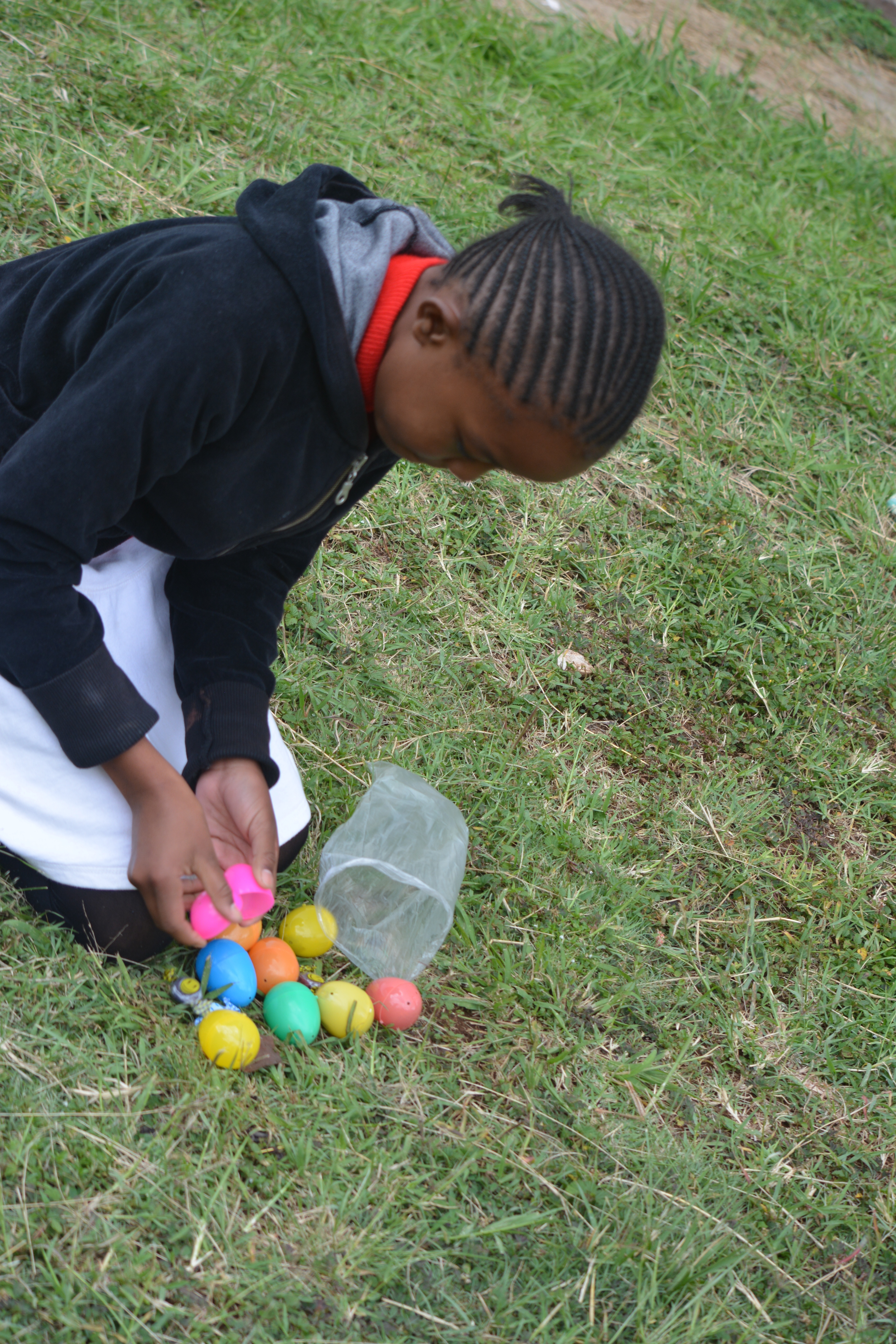 We are excited to be spending our first Easter here in Nairobi. As a way to reach out to our neighborhood and share the gospel with them, we hosted a neighborhood Resurrection Day Egg Hunt. We gathered about 30-40 kids from the neighborhood and met in one of the neighborhood’s fields where we played some relay games. After the games, the kids gathered around Lesli and our missionary friend Ali, who shared the Easter Story with them using the Resurrection Eggs from Family Life Today. The kids enjoyed interacting with the story and coming to the front to open each egg and see what was inside. Praise the Lord that we could share the truth of the Gospel with these precious children. Our prayer is that God would use His words to work in their hearts and draw them each to Him for salvation. After the story, we walked the kids down the street to another field where some other friends had hidden eggs for the kids to run and find. They were delighted to get some ‘sweets’ inside each of their eggs. As the kids gathered the eggs, we reminded them to remember the sweet story they had heard about Jesus that day. Happy Easter! ~Lesli