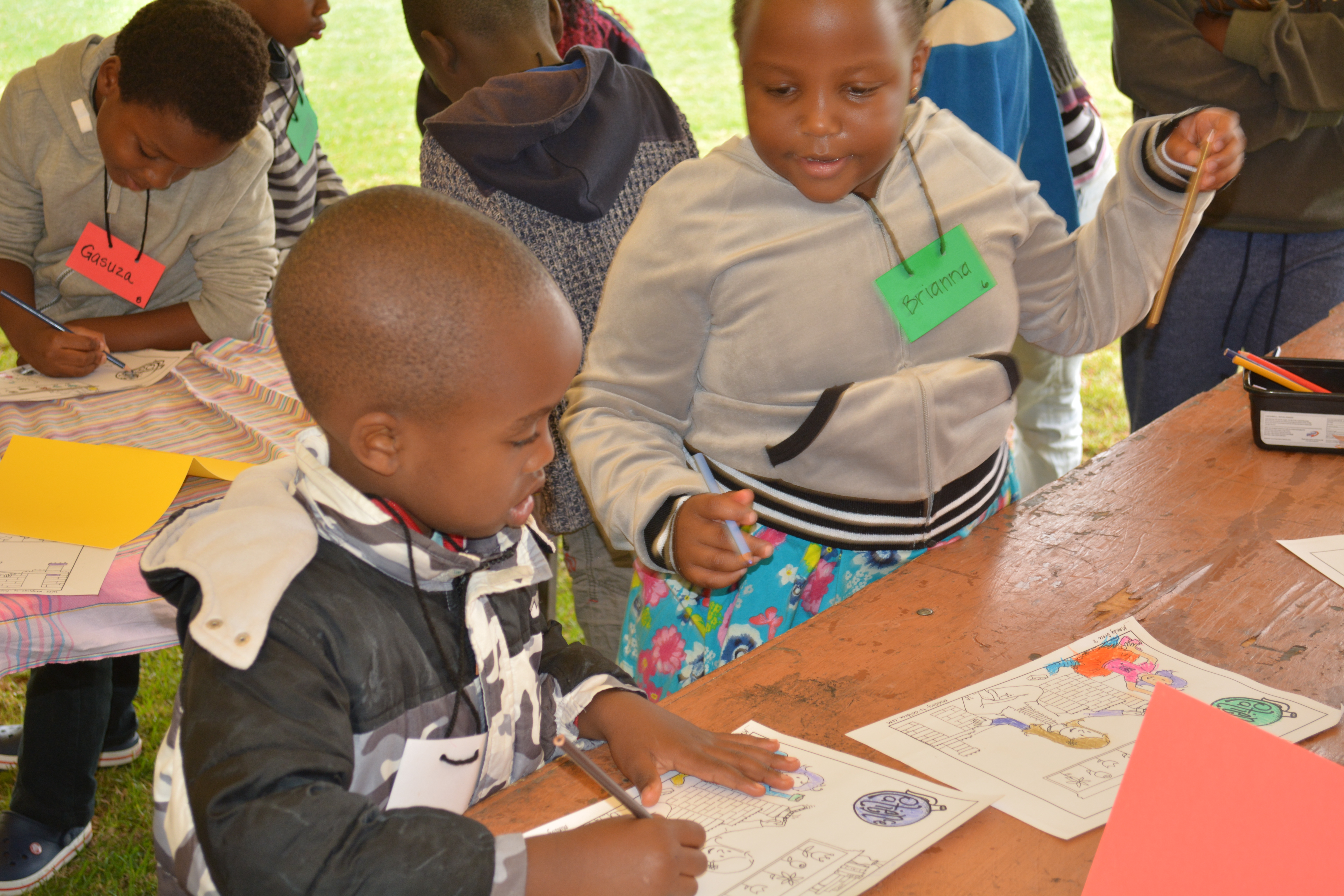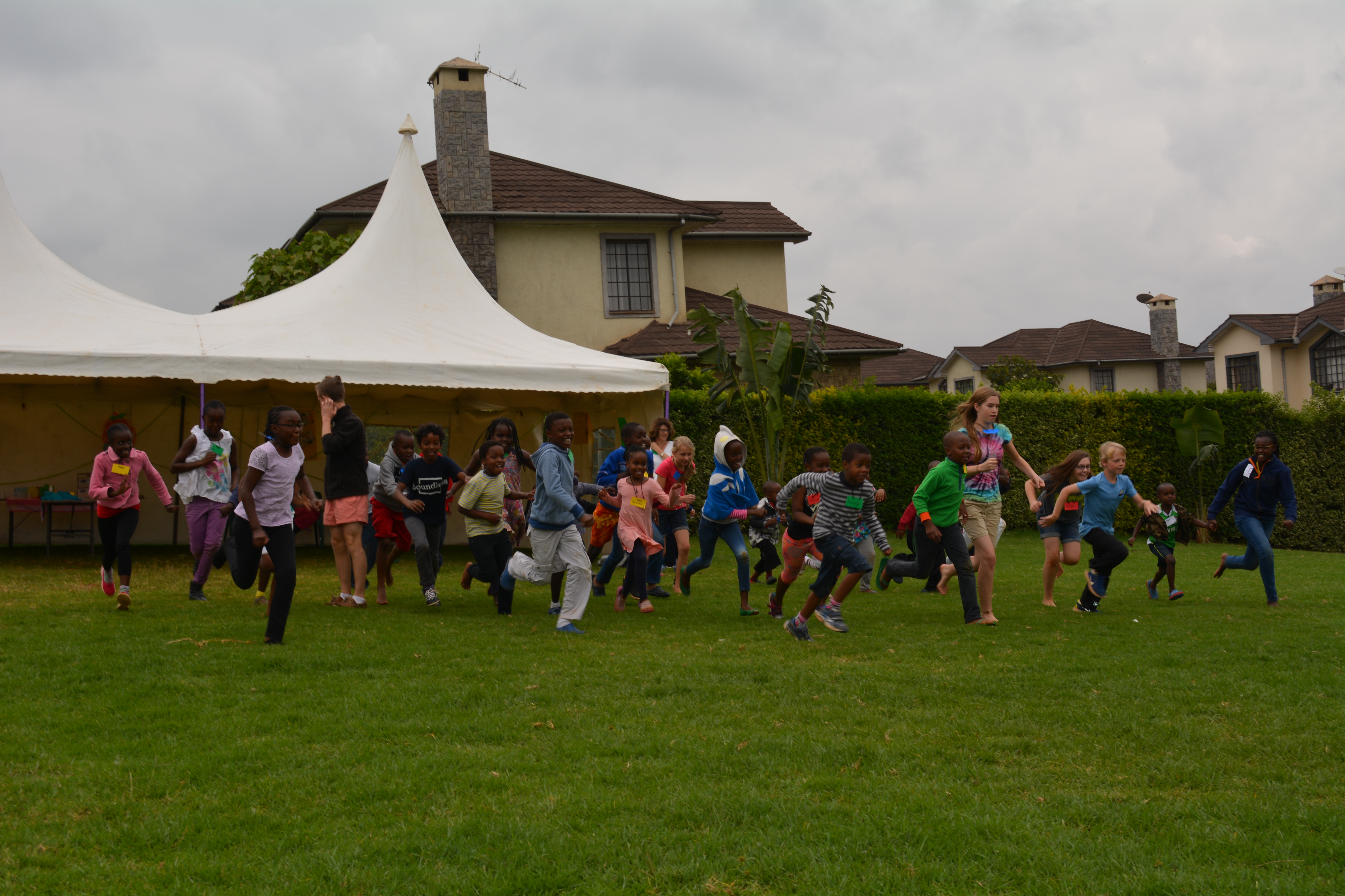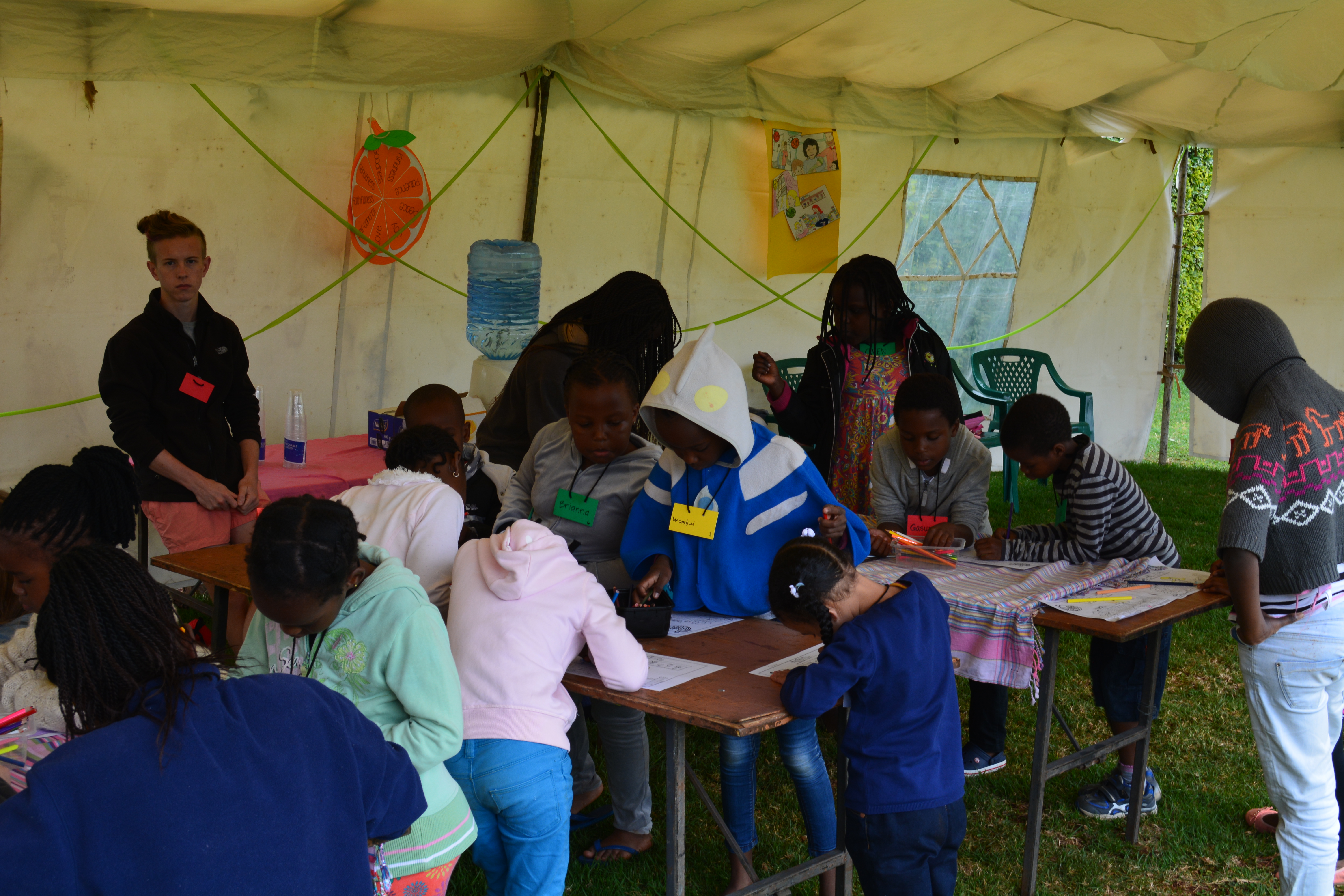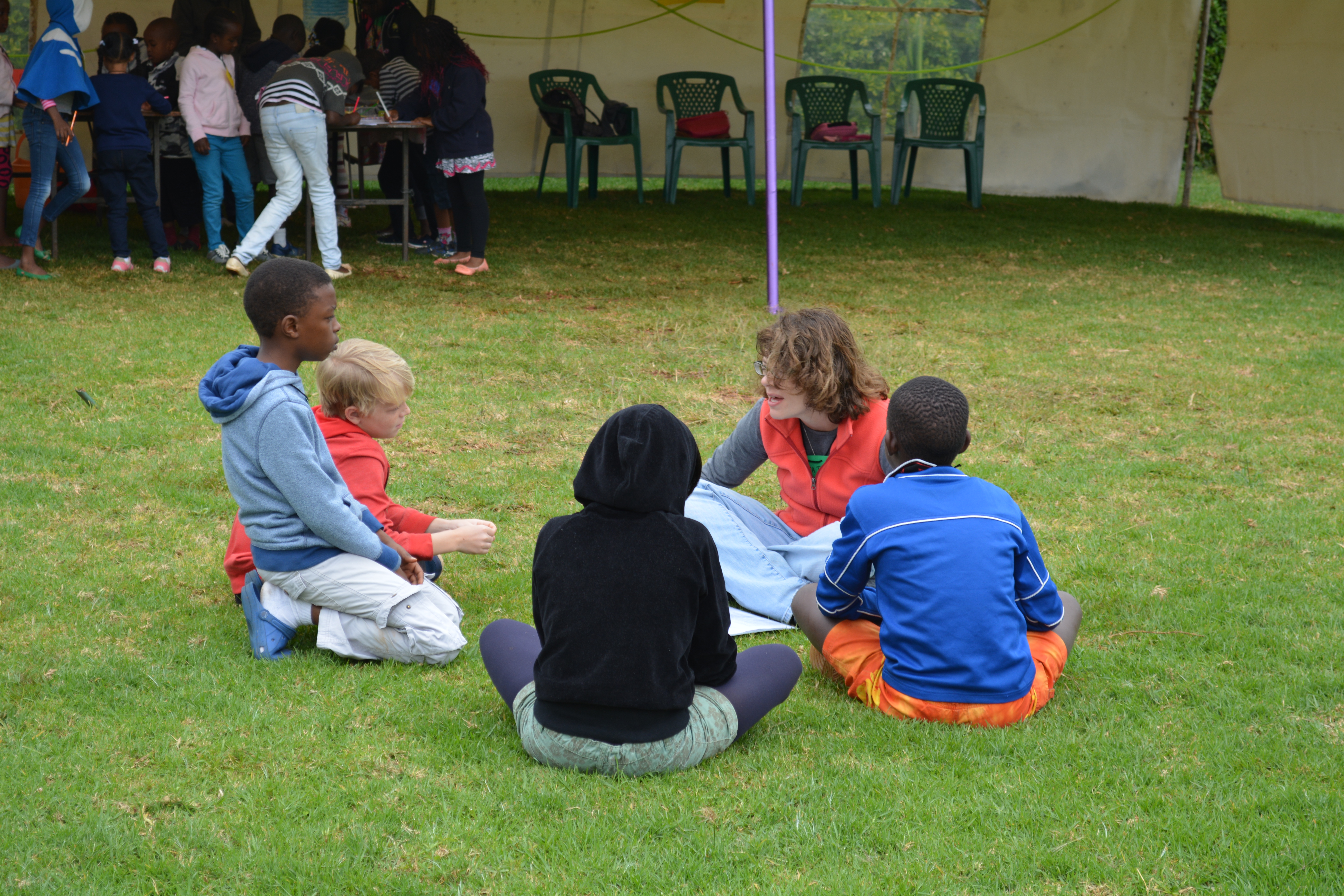 This week we are holding a neighborhood Vacation Bible School in the field across the street from our house. We rented a BIG TENT for our VBS…it was delivered and set up on Sunday afternoon. Monday we had about 24 kids and today 10 new children showed up to learn about Jesus and the fruit of the Spirit. We are having a great time! Here are a few photos of some of the activities we are enjoying…
