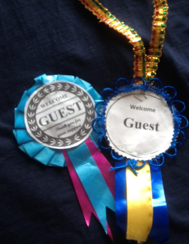 A group of young women approached us with small paper ribbons with the center stating ‘Welcome Guest’.They were selling them for 100 Kenyan shillings each (about one US dollar). Not knowing much about the traditions at such events, we bought one for each of us, and later were glad we did.