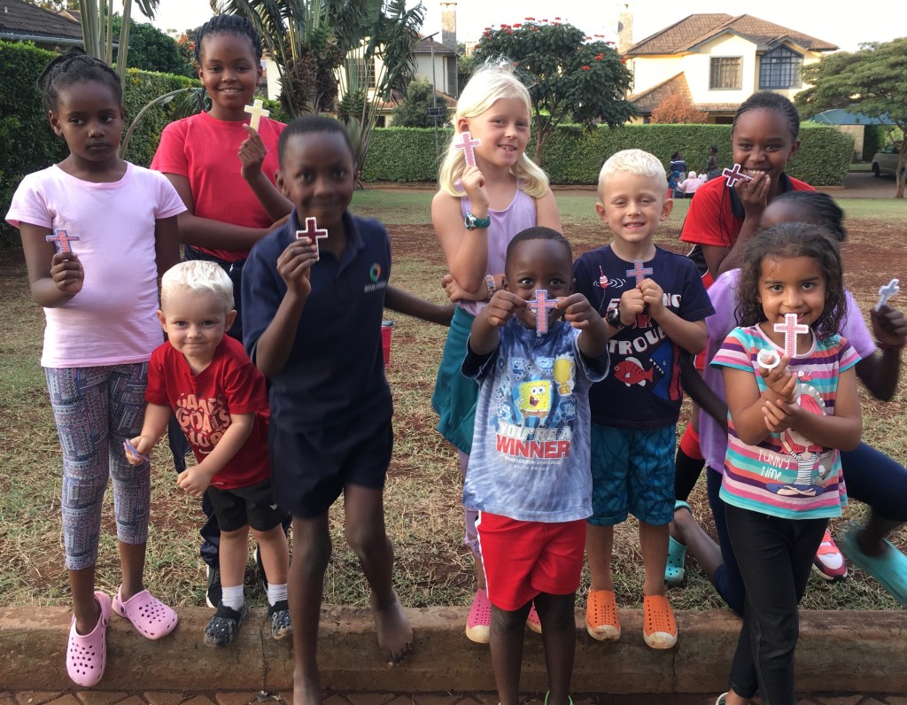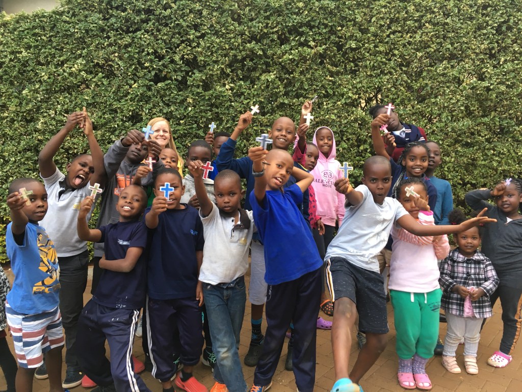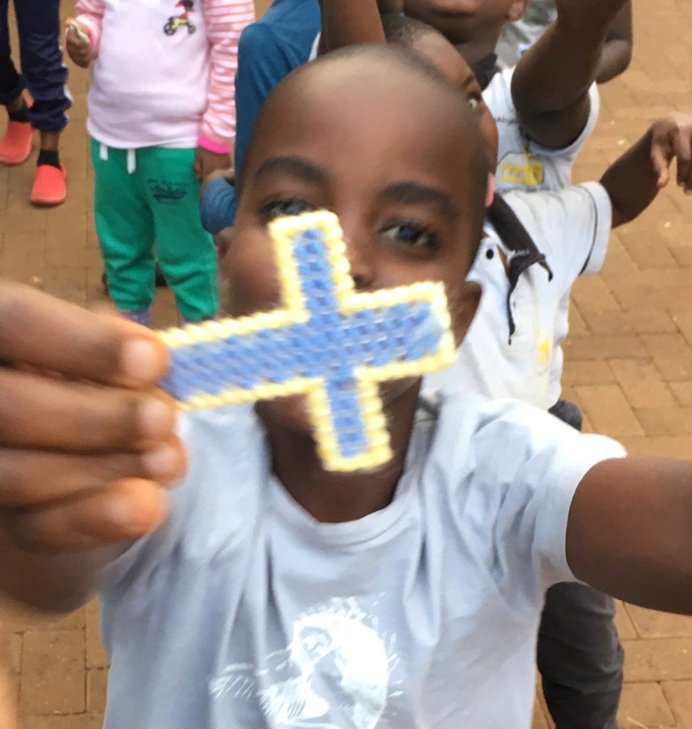 A few months ago, Andy from the AIM office in the US contacted me. He had received a few small plastic yarn stitched crosses from a woman who wanted to support an AIM ministry by stitching these for them. Andy remembered that we have a Weekly Kids’ Bible Club and thought the crosses might be a nice gift for the kids. Receiving the email, I wasn’t sure what I would do with the crosses, but after thinking about it I decided they would be a fun gift for the 25-35 kids I teach each Friday afternoon.