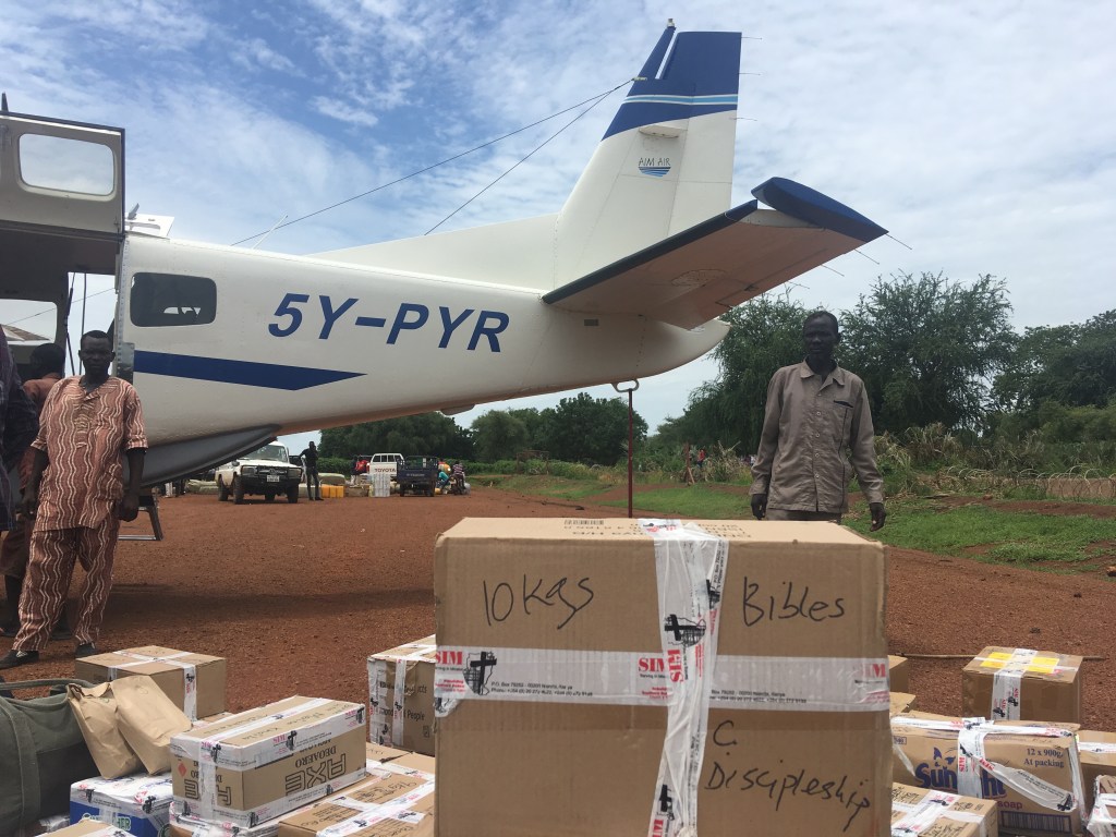 Peering down from 12,000 feet, I gaze upon the many greenhouses surrounding Lake Naivasha as my Cessna Caravan pulls its way through the blue and white puffy sky. I see the many lodges and campsites that dot the lake’s edge. Over long weekends, my family and I have enjoyed these quiet places of respite, away from the traffic and hustle of Nairobi city life. The lake is a couple hour drive by car, but it takes only minutes when flying out of Nairobi. I enjoy the amazing view, glad to be on our way. It has been a long day already and our journey North is just beginning. For several weeks, mosquito nets, food stuffs, soap, Bibles, discipleship materials and many other supplies have been arriving at the hangar to be carried North for today’s flight. With the items finally cleared by the customs agents and loaded on board, the SIM missionaries and I will fly 2.5 hours from Wilson Airport, Nairobi to Northern Kenya for the night. “Loki”, as we call it, provides a great starting point for criss crossing South Sudan the next day.