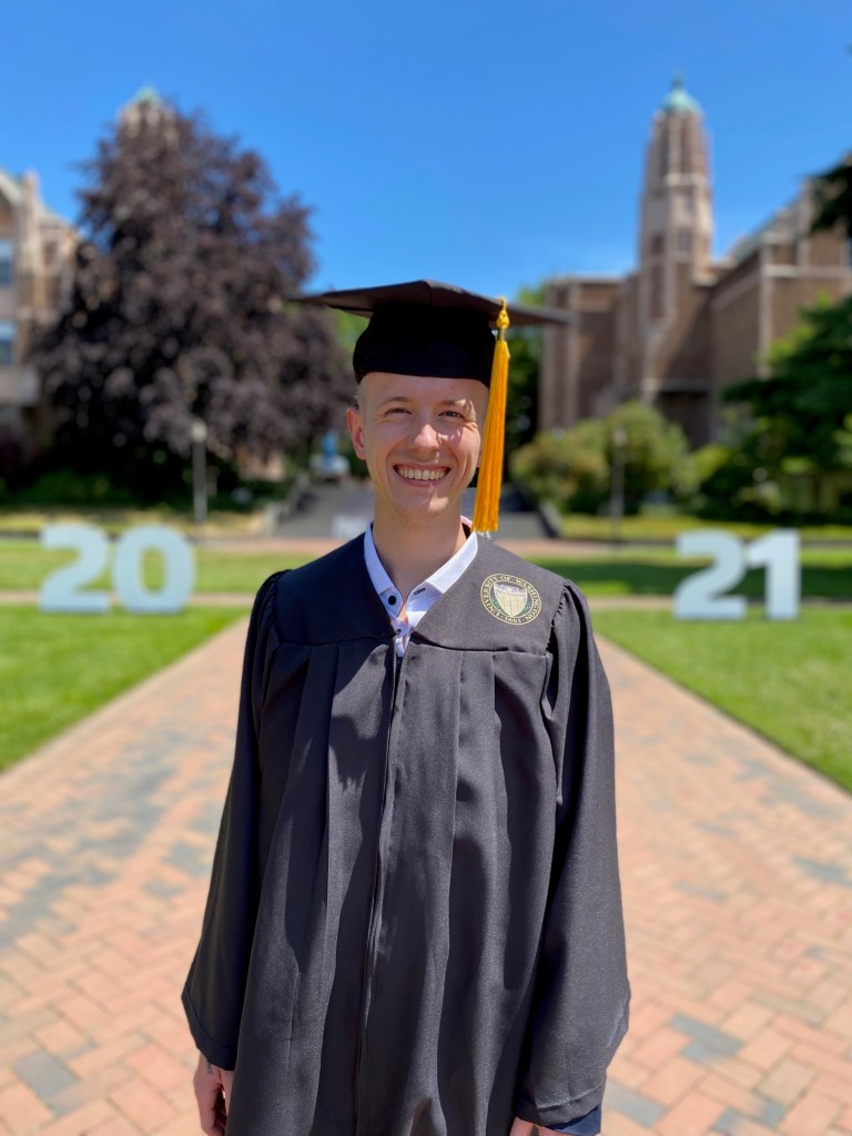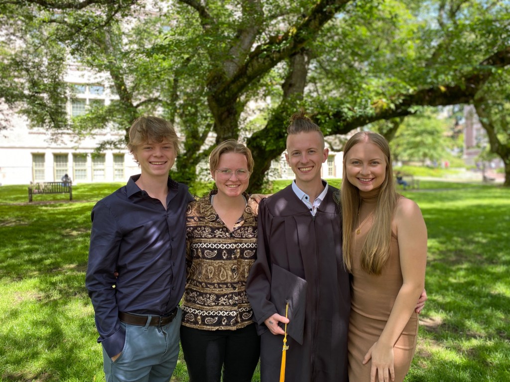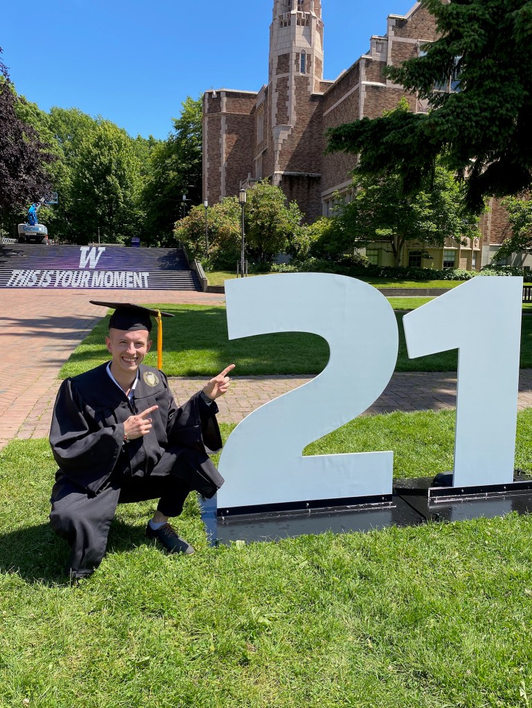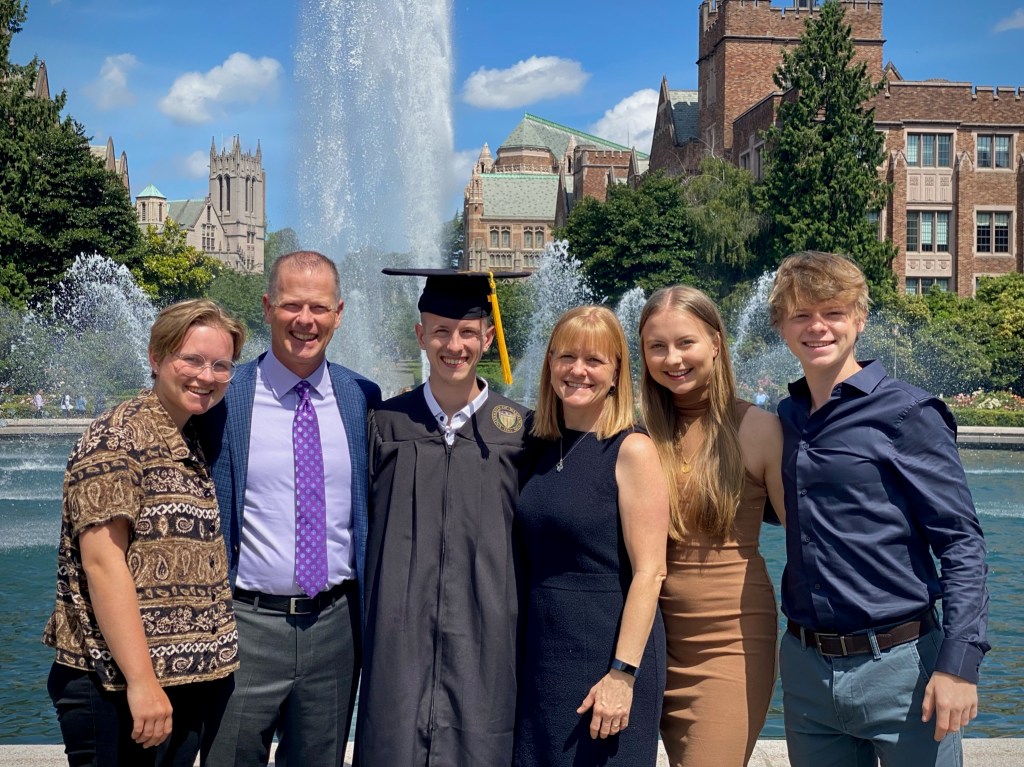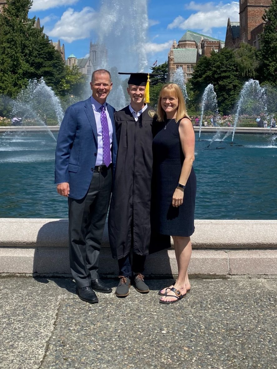 On June 10, 2021, our eldest son, Jon Michael Halvorson, graduated with a Bachelor of Arts in Environmental Studies from the School on the Environment at the University of Washington. Because of Washington state Covid restrictions at the time of his graduation, Jon Michael did not get to ‘walk’ to receive his diploma, but he ordered a cap and gown anyway for the time of celebration. On Saturday, June 12th, we had a great day walking around the U of W campus on a perfectly sunny day as Jon Michael, wearing his hard earned cap and gown, showed us where he did so much of his hard work.
