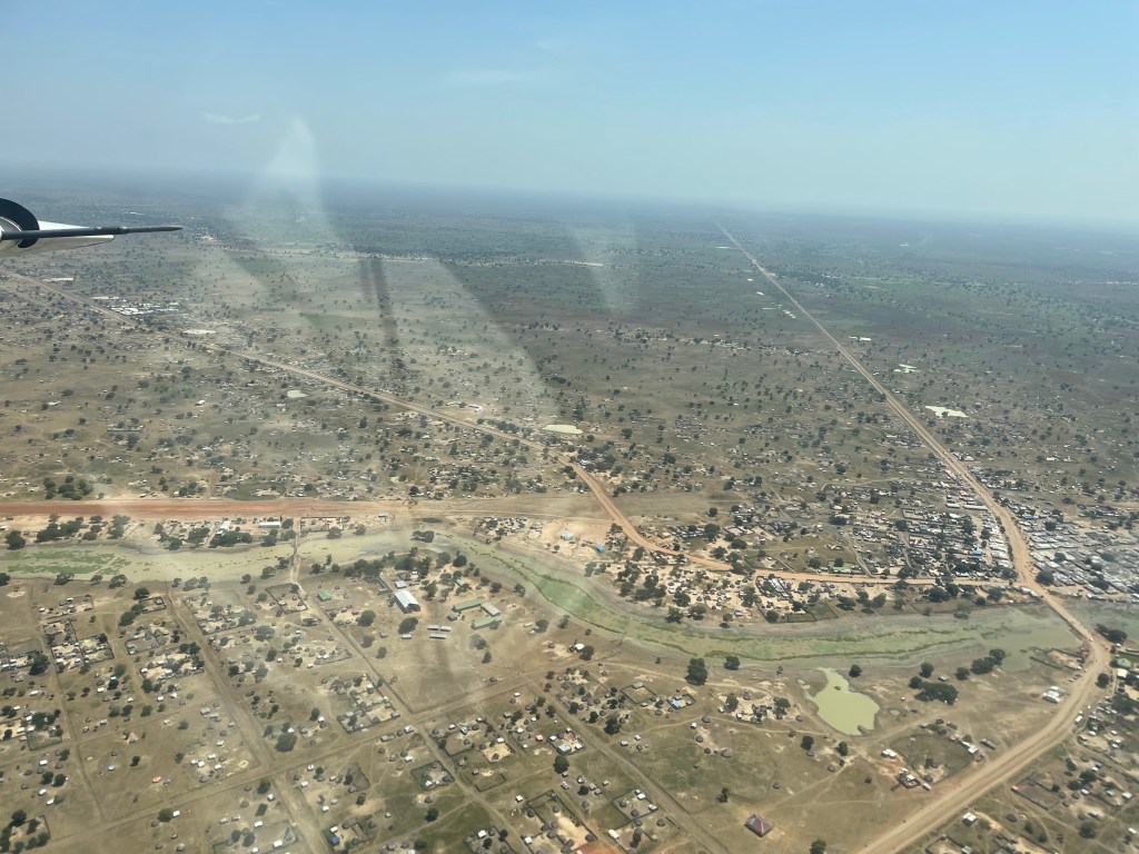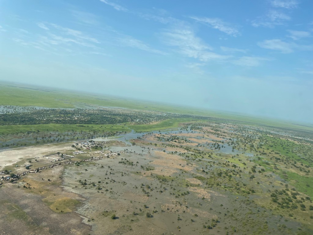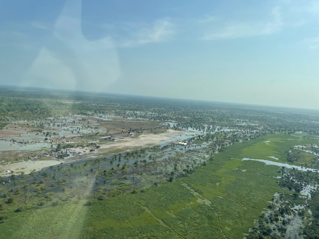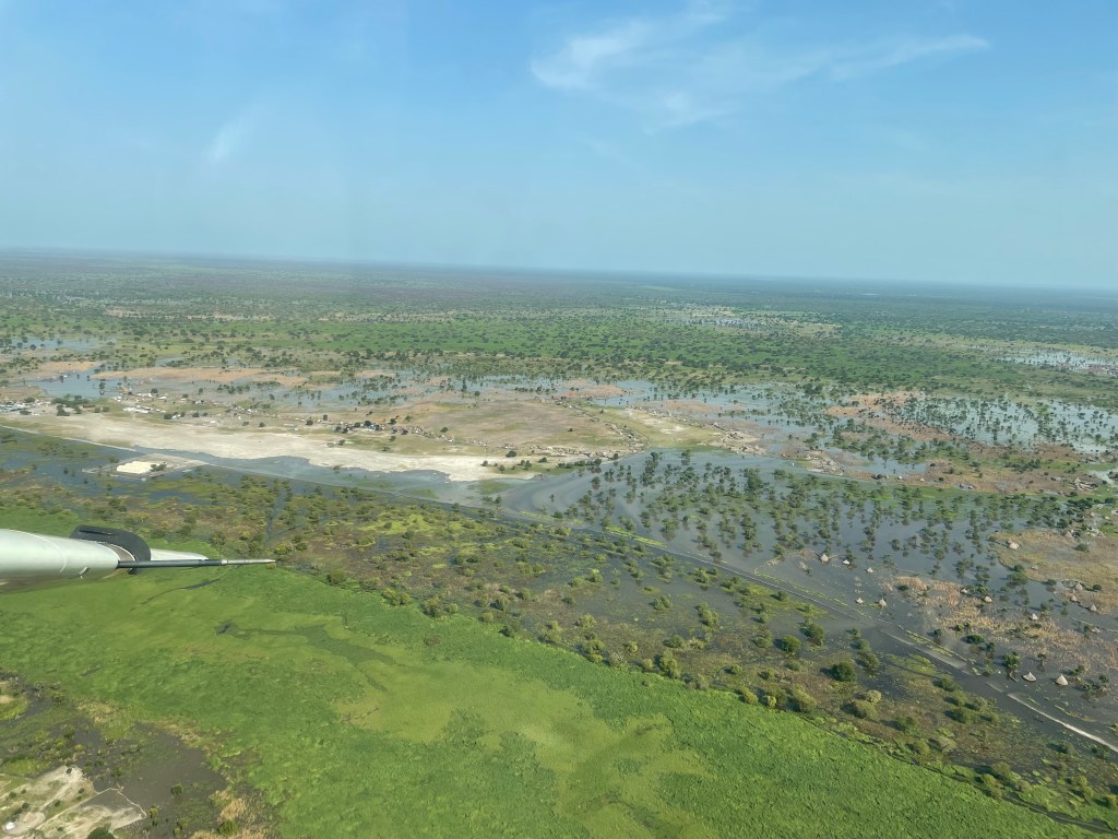 The water surrounded this remote airstrip that is built up in the swamp land, giving it protection from the flooding. This runway, built with 5000 feet of murrum soil, is located in a swampy area with no buildings or infrastructure around it except a water-filled road leading to a town 3 kilometers away. After I landed, I could see the passengers struggling to get out to the runway, trudging through the swampy water to make it to the plane. My heart was filled with compassion to see them struggle, wondering how far they had come to make it to the airplane for this opportunity to have the needed surgery. Thoughts also flooded my soul about the abundance of material things I enjoy and the endless opportunities that abound in my life. I have so much, while some have so little. Upon their arrival to the airplane, I welcomed them through the help of an interpreter, giving them instructions about the flight and then we all prayed together, thanking God for this opportunity and asking for Him to watch over us on the journey to Juba.